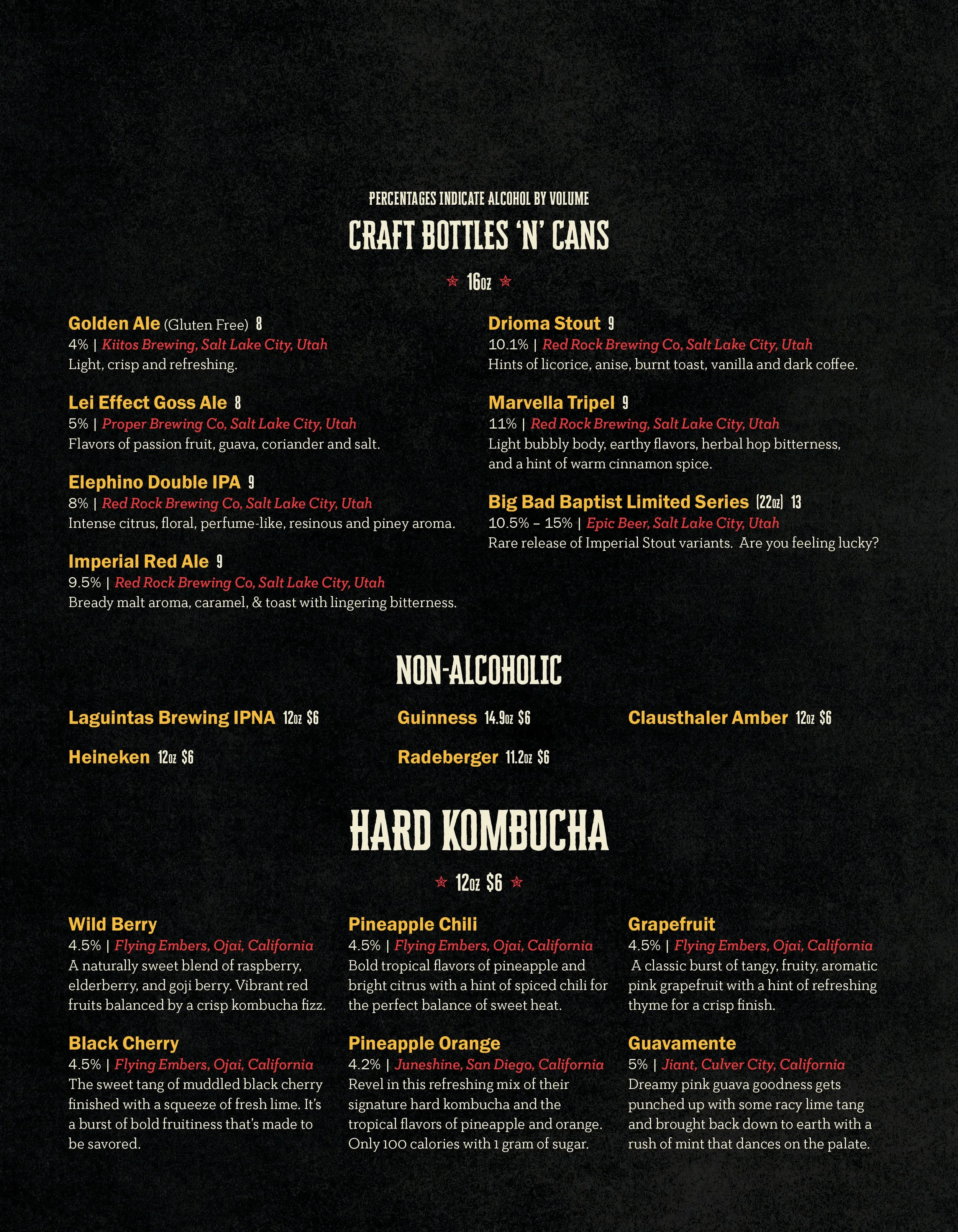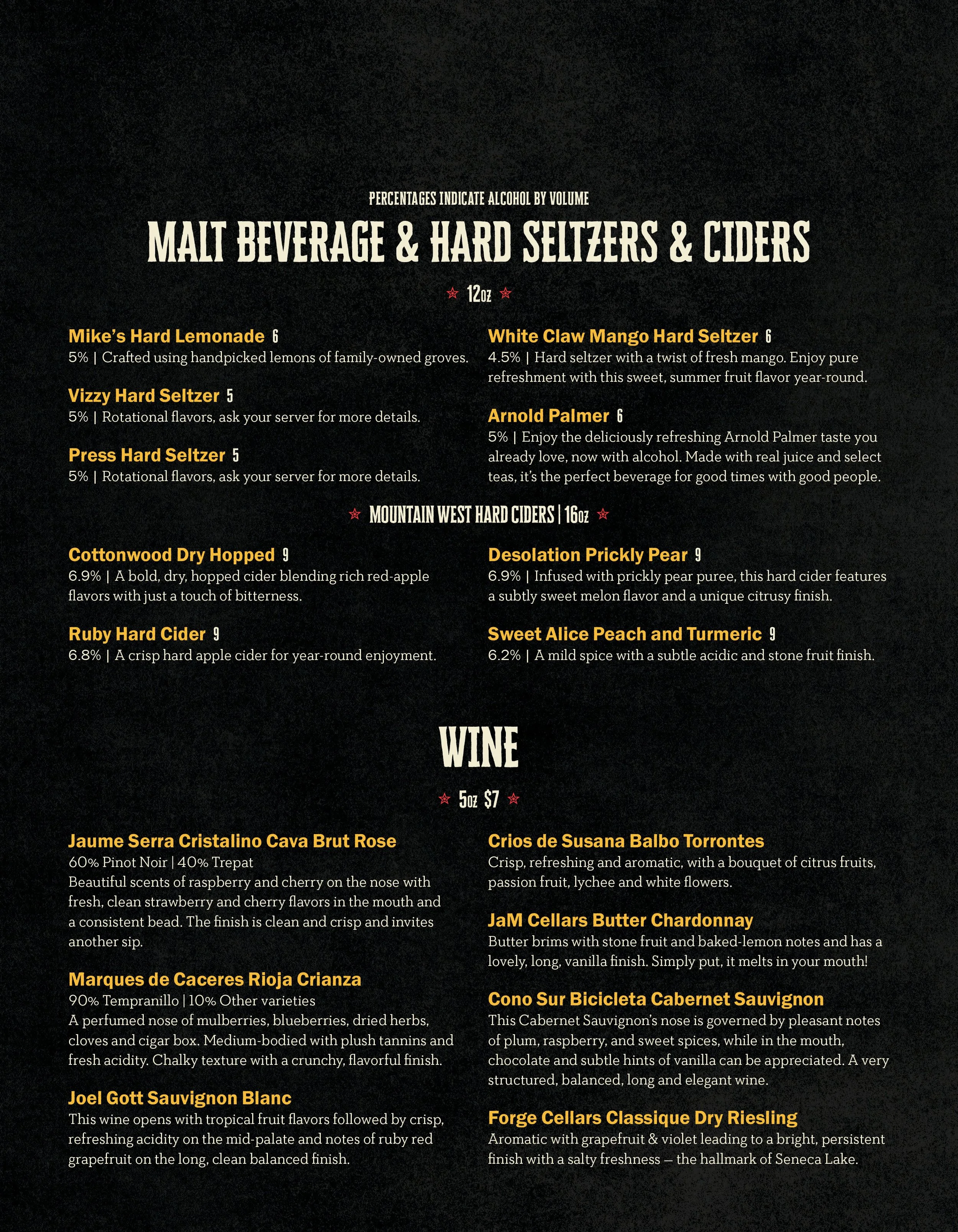 Menu of beverages including fountain drinks, Mexican soda, bottled drinks, smoothies, hot drinks, and a soda with orange cream.